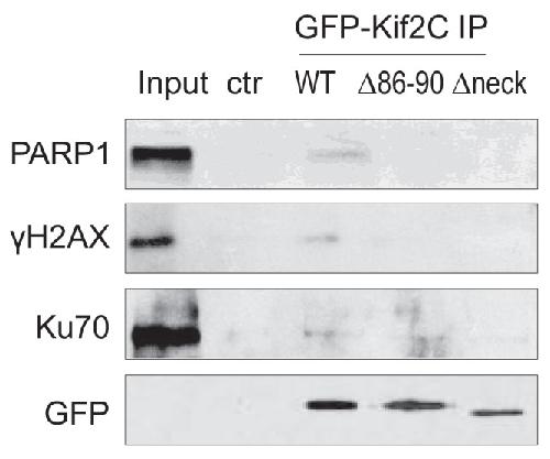 Kinesin Kif2C in regulation of DNA double strand break dynamics and repair. , Zhu S, Paydar M, Wang F, Li Y, Wang L, Barrette B, Bessho T, Kwok BH, Peng A ., Elife. January 17, 2020; 9