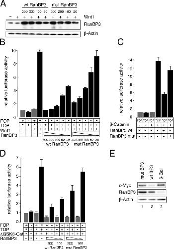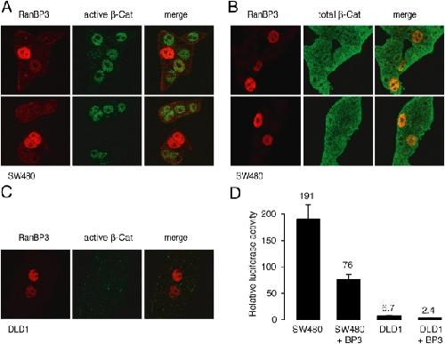 RanBP3 enhances nuclear export of active (beta)-catenin independently of CRM1. , Hendriksen J, Fagotto F , van der Velde H, van Schie M, Noordermeer J, Fornerod M., J Cell Biol. December 5, 2005; 171 (5): 785-97.