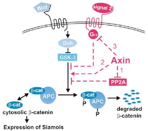 Nucleo-cytoplasmic shuttling of Axin, a negative regulator of the Wnt-beta-catenin Pathway. , Wiechens N, Heinle K, Englmeier L, Schohl A , Fagotto F ., J Biol Chem. February 13, 2004; 279 (7): 5263-7.