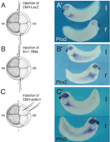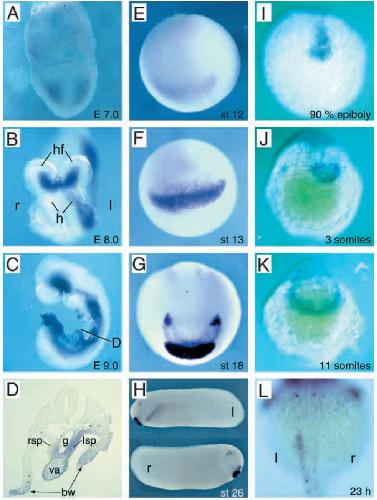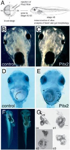 The homeobox gene Pitx2: mediator of asymmetric left-right signaling in vertebrate heart and gut looping., Campione M, Steinbeisser H, Schweickert A, Deissler K, van Bebber F, Lowe LA, Nowotschin S, Viebahn C, Haffter P, Kuehn MR, Blum M., Development. March 1, 1999; 126 (6): 1225-34. |