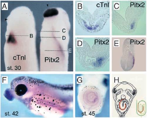 Pitx2 isoforms: involvement of Pitx2c but not Pitx2a or Pitx2b in vertebrate left-right asymmetry., Schweickert A, Campione1 M, Steinbeisser H, Blum M., Mech Dev. January 1, 2000; 90 (1): 41-51. |