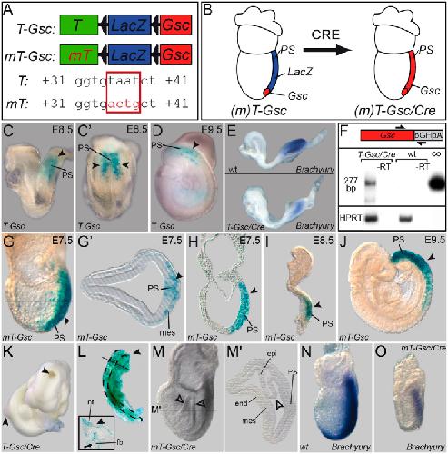 goosecoid expression represses Brachyury in embryonic stem cells and affects craniofacial development in chimeric mice., Boucher DM, Schäffer M, Deissler K, Moore CA, Gold JD, Burdsal CA, Meneses JJ, Pedersen RA, Blum M., Int J Dev Biol. April 1, 2000; 44 (3): 279-88. |