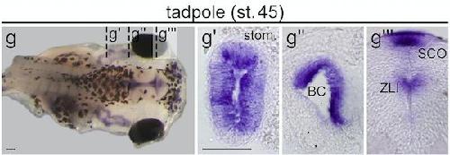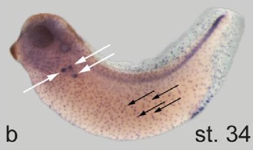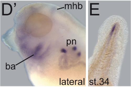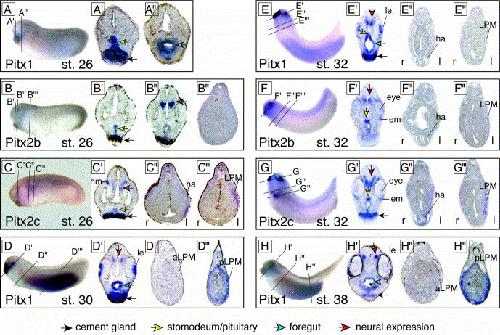 Differential gene expression of Xenopus Pitx1, Pitx2b and Pitx2c during cement gland, stomodeum and pituitary development., Schweickert A, Steinbeisser H, Blum M., Mech Dev. September 1, 2001; 107 (1-2): 191-4. |