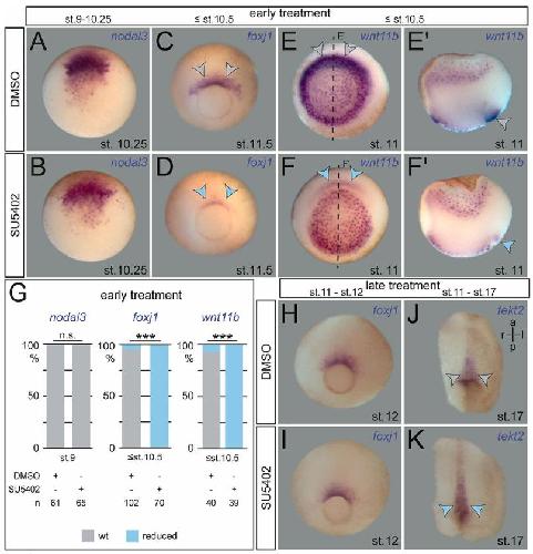 A dual function of FGF signaling in Xenopus left-right axis formation., Schneider I, Kreis J, Schweickert A, Blum M, Vick P., Development. May 10, 2019; 146 (9): |