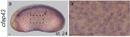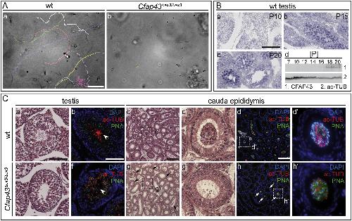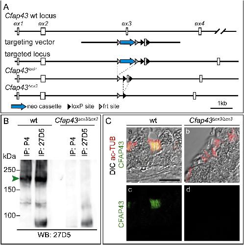 CFAP43 modulates ciliary beating in mouse and Xenopus., Rachev E, Schuster-Gossler K, Fuhl F, Ott T, Tveriakhina L, Beckers A, Hegermann J, Boldt K, Mai M, Kremmer E, Ueffing M, Blum M, Gossler A., Dev Biol. March 15, 2020; 459 (2): 109-125. |