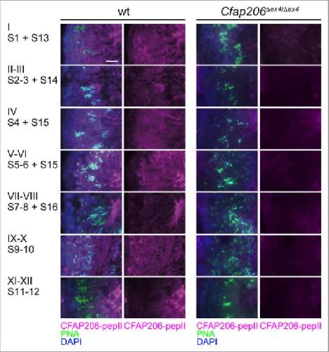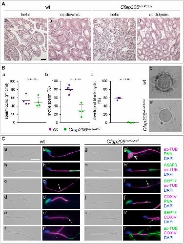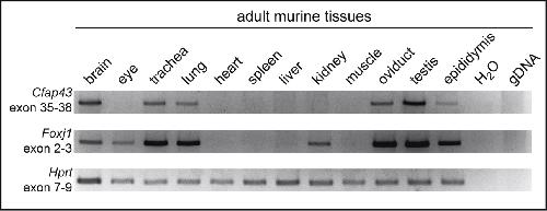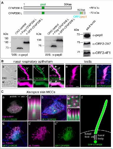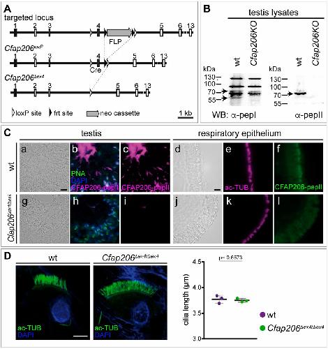 The FOXJ1 target Cfap206 is required for sperm motility, mucociliary clearance of the airways and brain development., Beckers A, Adis C, Schuster-Gossler K, Tveriakhina L, Ott T, Fuhl F, Hegermann J, Boldt K, Serth K, Rachev E, Alten L, Kremmer E, Ueffing M, Blum M, Gossler A., Development. June 15, 2020; 147 (21): |
