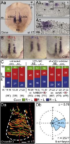 The nodal inhibitor Coco is a critical target of leftward flow in Xenopus., Schweickert A, Vick P, Getwan M, Weber T, Schneider I, Eberhardt M, Beyer T, Pachur A, Blum M., Curr Biol. April 27, 2010; 20 (8): 738-43. |