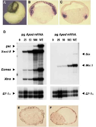 The Xenopus T-box gene, Antipodean, encodes a vegetally localised maternal mRNA and can trigger mesoderm formation., Stennard F, Carnac G, Gurdon JB., Development. December 1, 1996; 122 (12): 4179-88. |