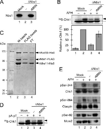 The Mre11- Rad50- Nbs1 (MRN) complex has a specific role in the activation of Chk1 in response to stalled replication forks. , Lee J , Dunphy WG ., Mol Biol Cell. May 1, 2013; 24 (9): 1343-53.