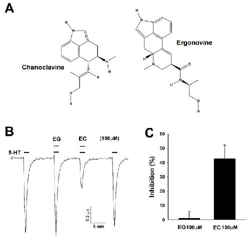 Differential Regulation of Human Serotonin Receptor Type 3A by Chanoclavine and Ergonovine. , Eom S, Jung W, Lee J , Yeom HD, Lee S, Kim C, Park HD, Lee JH ., Molecules. February 24, 2021; 26 (5):
