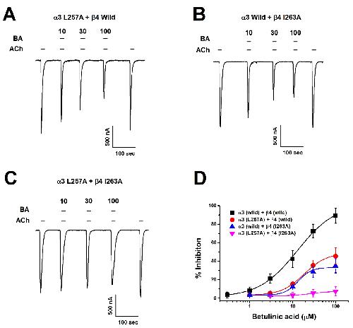 Molecular Determinants of α3β4 Nicotinic Acetylcholine Receptors Inhibition by Triterpenoids. , Eom S, Kim YS, Lee SB, Noh S, Yeom HD, Bae H, Lee JH ., Biol Pharm Bull. January 1, 2018; 41 (1): 65-72.