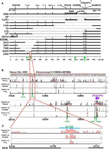 Multiple enhancers located in a 1-Mb region upstream of POU3F4 promote expression during inner ear development and may be required for hearing. , Naranjo S, Voesenek K, de la Calle-Mustienes E , Robert-Moreno A, Kokotas H, Grigoriadou M, Economides J, Van Camp G, Hilgert N, Moreno F, Alsina B, Petersen MB, Kremer H, Gómez-Skarmeta JL ., Hum Genet. October 1, 2010; 128 (4): 411-9.