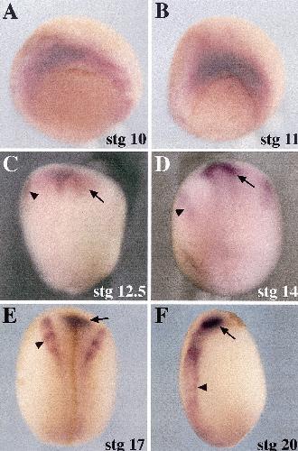 Xenopus brain factor-2 controls mesoderm, forebrain and neural crest development. , Gómez-Skarmeta JL , de la Calle-Mustienes E , Modolell J, Mayor R ., Mech Dev. January 1, 1999; 80 (1): 15-27.