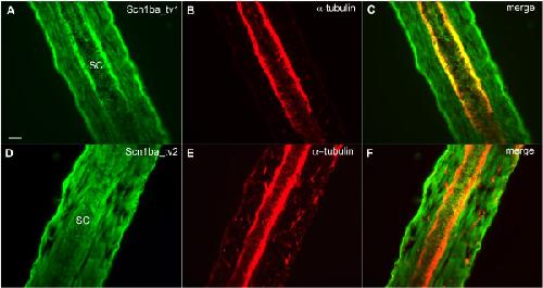 A functional null mutation of SCN1B in a patient with Dravet syndrome., Patino GA, Claes LR, Lopez-Santiago LF, Slat EA, Dondeti RS, Chen C, O'Malley HA, Gray CB, Miyazaki H, Nukina N, Oyama F, De Jonghe P, Isom LL., J Neurosci. August 26, 2009; 29 (34): 10764-78. |