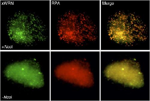 Replication focus-forming activity 1 and the Werner syndrome gene product., Yan H, Chen CY, Kobayashi R, Newport J., Nat Genet. August 1, 1998; 19 (4): 375-8. |