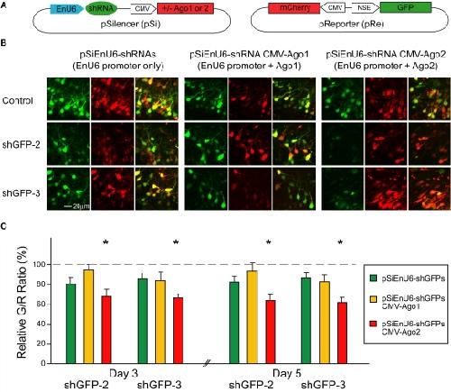 Co-expression of Argonaute2 Enhances Short Hairpin RNA-induced RNA Interference in Xenopus CNS Neurons In Vivo., Chen CM, Chiu SL, Shen W, Cline HT., Front Neurosci. July 9, 2009; 3 63. |
