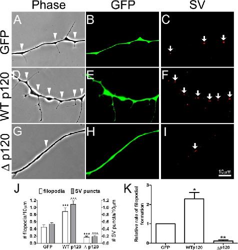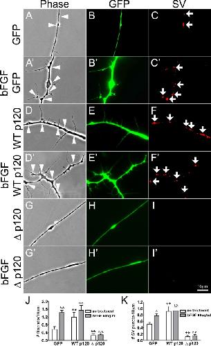 The function of p120 catenin in filopodial growth and synaptic vesicle clustering in neurons., Chen C, Li PP, Madhavan R, Peng HB., Mol Biol Cell. July 1, 2012; 23 (14): 2680-91. |