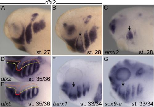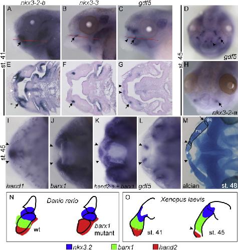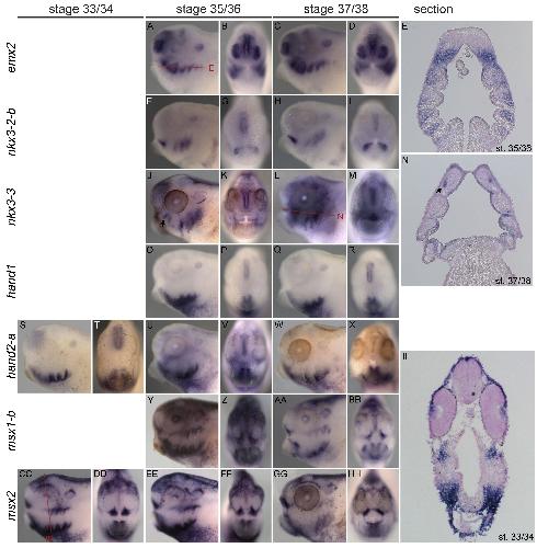 A gene expression map of the larval Xenopus laevis head reveals developmental changes underlying the evolution of new skeletal elements., Square T, Jandzik D, Cattell M, Coe A, Doherty J, Medeiros DM., Dev Biol. January 15, 2015; 397 (2): 293-304. |