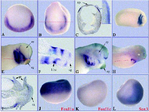 Sequence and expression of FoxB2 ( XFD-5) and FoxI1c ( XFD-10) in Xenopus embryogenesis. , Pohl BS, Knöchel S, Dillinger K , Knöchel W ., Mech Dev. September 1, 2002; 117 (1-2): 283-7.