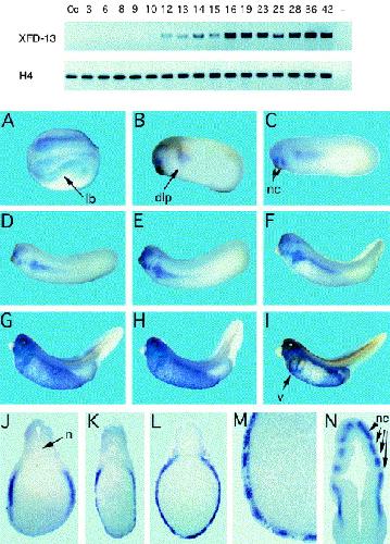 Genomic structure and embryonic expression of the Xenopus winged helix factors XFD-13/13'. , Köster M, Dillinger K , Knöchel W ., Mech Dev. October 1, 1999; 88 (1): 89-93.
