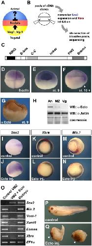 Patterning by genes expressed in Spemann''s organizer., De Robertis EM, Kim S, Leyns L, Piccolo S, Bachiller D, Agius E, Belo JA, Yamamoto A, Hainski-Brousseau A, Brizuela B, Wessely O, Lu B, Bouwmeester T., Cold Spring Harb Symp Quant Biol. January 1, 1997; 62 169-75. |