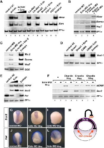 Endoderm induction by the organizer-secreted factors chordin and noggin in Xenopus animal caps., Sasai Y, Lu B, Piccolo S, De Robertis EM., EMBO J. September 2, 1996; 15 (17): 4547-55. |