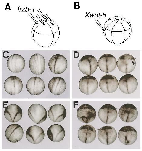 Frzb-1 is a secreted antagonist of Wnt signaling expressed in the Spemann organizer., Leyns L, Bouwmeester T, Kim SH, Piccolo S, De Robertis EM., Cell. March 21, 1997; 88 (6): 747-56. |