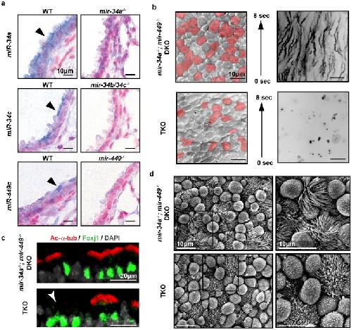 miR-34/449 miRNAs are required for motile ciliogenesis by repressing cp110. , Song R, Walentek P , Sponer N, Klimke A, Lee JS , Dixon G, Harland R , Wan Y, Lishko P, Lize M, Kessel M, He L., Nature. June 5, 2014; 510 (7503): 115-20.