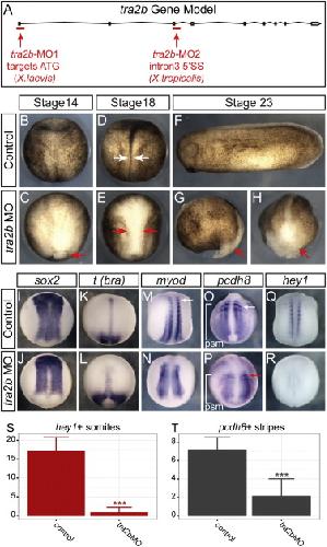 The alternative splicing regulator Tra2b is required for somitogenesis and regulates splicing of an inhibitory Wnt11b isoform. , Dichmann DS , Walentek P , Harland RM ., Cell Rep. February 3, 2015; 10 (4): 527-36.
