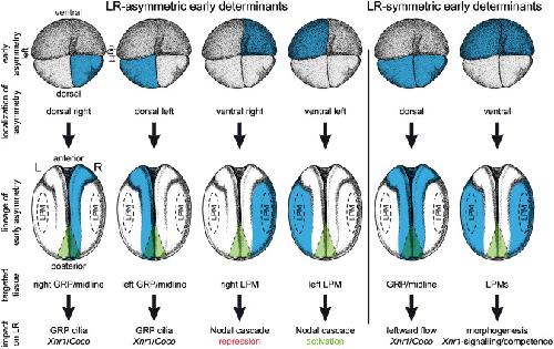 Linking early determinants and cilia-driven leftward flow in left- right axis specification of Xenopus laevis: a theoretical approach. , Schweickert A , Walentek P , Thumberger T , Danilchik M ., Differentiation. February 1, 2012; 83 (2): S67-77.