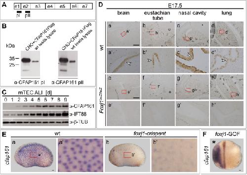 The highly conserved FOXJ1 target CFAP161 is dispensable for motile ciliary function in mouse and Xenopus. , Beckers A, Fuhl F, Ott T, Boldt K, Brislinger MM, Walentek P , Schuster-Gossler K, Hegermann J, Alten L, Kremmer E, Przykopanski A, Serth K, Ueffing M, Blum M , Gossler A., Sci Rep. June 25, 2021; 11 (1): 13333.
