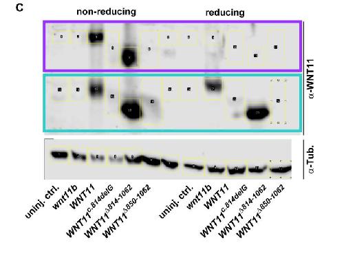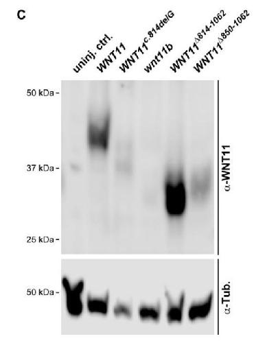 A homozygous human WNT11 variant is associated with laterality, heart and renal defects. , Berns H, Weber D , Haas M, Bakey Z, Brislinger-Engelhardt MM, Schmidts M, Walentek P ., Dis Model Mech. April 9, 2025;