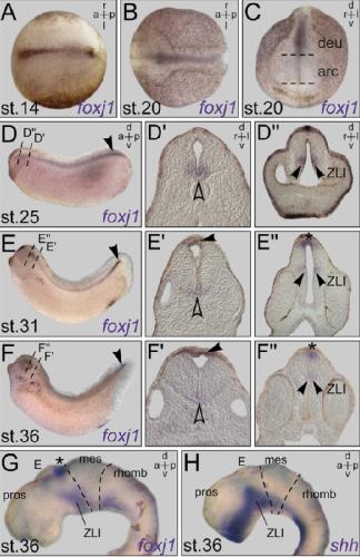 Ciliogenesis and cerebrospinal fluid flow in the developing Xenopus brain are regulated by foxj1. , Hagenlocher C, Walentek P , M Ller C, Thumberger T , Feistel K ., Cilia. April 29, 2013; 2 (1): 12.