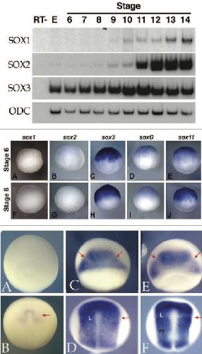 A maternally established SoxB1/SoxF axis is a conserved feature of chordate germ layer patterning. , Cattell MV, Garnett AT, Klymkowsky MW , Medeiros DM ., Evol Dev. January 1, 2012; 14 (1): 104-15.