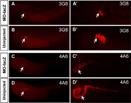 Heat shock 70-kDa protein 5 ( Hspa5) is essential for pronephros formation by mediating retinoic acid signaling. , Shi W, Xu G, Wang C , Sperber SM, Chen Y , Zhou Q, Deng Y, Zhao H ., J Biol Chem. January 2, 2015; 290 (1): 577-89.