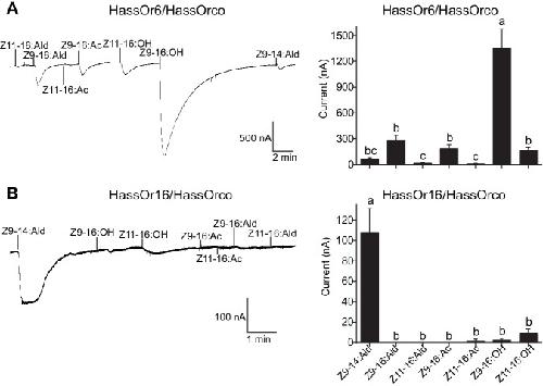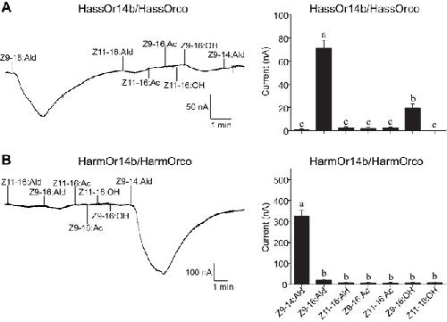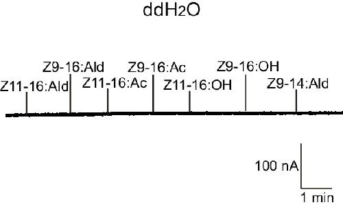 Two single-point mutations shift the ligand selectivity of a pheromone receptor between two closely related moth species. , Yang K, Huang LQ, Ning C, Wang CZ ., Elife. October 24, 2017; 6