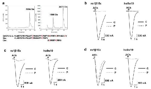 Identification of a Novel O-Conotoxin Reveals an Unusual and Potent Inhibitor of the Human α9α10 Nicotinic Acetylcholine Receptor. , Jiang S, Tae HS, Xu S, Shao X, Adams DJ, Wang C ., Mar Drugs. June 9, 2017; 15 (6):