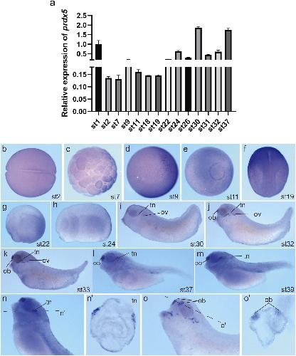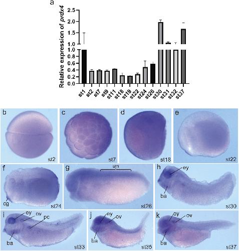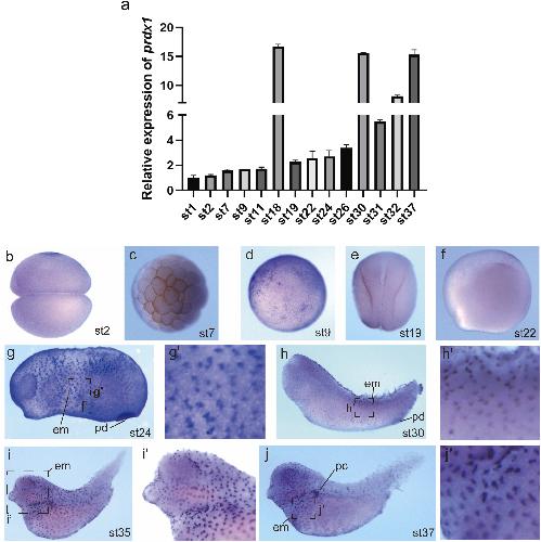 Developmental expression of peroxiredoxin gene family in early embryonic development of Xenopus tropicalis. , Zhong L, Fu T, Wang C , Qi X, Chan WY, Cai D, Zhao H ., Gene Expr Patterns. December 1, 2023; 50 119345.