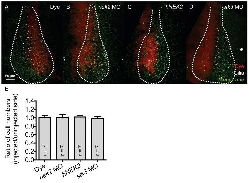 The NIMA-like kinase Nek2 is a key switch balancing cilia biogenesis and resorption in the development of left- right asymmetry. , Endicott SJ, Basu B, Khokha M , Brueckner M ., Development. December 1, 2015; 142 (23): 4068-79.