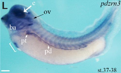 pdzrn3 is required for pronephros morphogenesis in Xenopus laevis. , Marracci S , Vangelisti A, Raffa V, Andreazzoli M , Dente L ., Int J Dev Biol. January 1, 2016; 60 (1-3): 57-63.