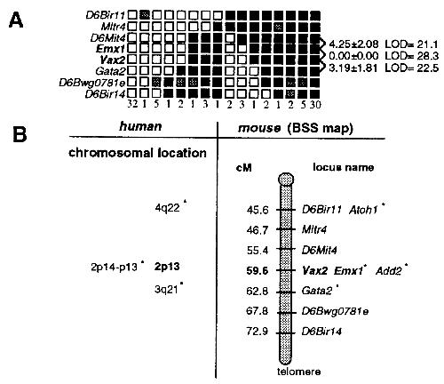 A homeobox gene, vax2, controls the patterning of the eye dorsoventral axis. , Barbieri AM, Lupo G, Bulfone A, Andreazzoli M , Mariani M, Fougerousse F, Consalez GG, Borsani G, Beckmann JS, Barsacchi G, Ballabio A, Banfi S., Proc Natl Acad Sci U S A. September 14, 1999; 96 (19): 10729-34.