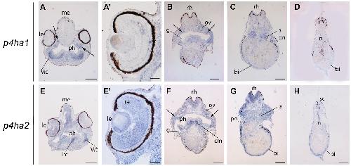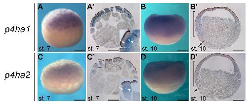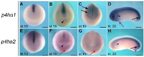 Comparative analysis of p4ha1 and p4ha2 expression during Xenopus laevis development. , Martini D, Giannaccini M, Guadagni V, Marracci S , Giudetti G, Andreazzoli M ., Int J Dev Biol. January 1, 2019; 63 (6-7): 311-316.