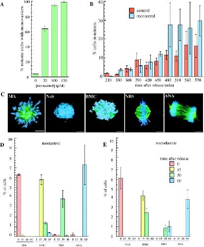 Small molecule inhibitor of mitotic spindle bipolarity identified in a phenotype-based screen. , Mayer TU , Kapoor TM, Haggarty SJ, King RW, Schreiber SL, Mitchison TJ ., Science. October 29, 1999; 286 (5441): 971-4.