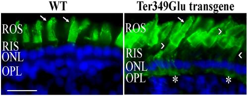 The severe autosomal dominant retinitis pigmentosa rhodopsin mutant Ter349Glu mislocalizes and induces rapid rod cell death., Hollingsworth TJ, Gross AK., J Biol Chem. October 4, 2013; 288 (40): 29047-55. |