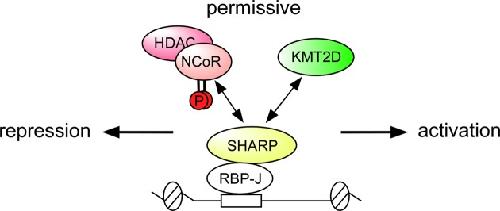 A phospho-dependent mechanism involving NCoR and KMT2D controls a permissive chromatin state at Notch target genes., Oswald F, Rodriguez P, Giaimo BD, Antonello ZA, Mira L, Mittler G, Thiel VN, Collins KJ, Tabaja N, Cizelsky W, Rothe M, Kühl SJ, Kühl M, Ferrante F, Hein K, Kovall RA, Dominguez M, Borggrefe T., Nucleic Acids Res. June 2, 2016; 44 (10): 4703-20. |
