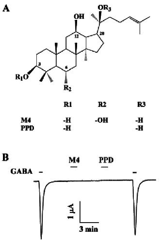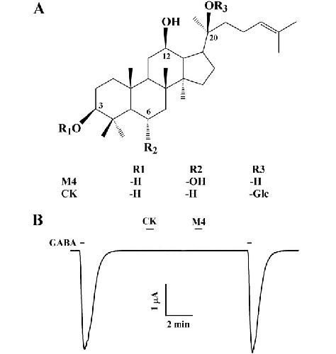 Ginsenoside Rg₃ regulates GABAA receptor channel activity: involvement of interaction with the γ₂ subunit. , Lee BH, Kim HJ , Chung L, Nah SY., Eur J Pharmacol. April 5, 2013; 705 (1-3): 119-25.