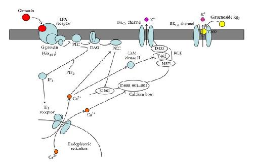 Molecular mechanisms of large-conductance ca (2+) -activated potassium channel activation by ginseng gintonin. , Choi SH, Lee BH, Hwang SH, Kim HJ , Lee SM, Kim HC , Rhim HW, Nah SY., Evid Based Complement Alternat Med. January 1, 2013; 2013 323709.