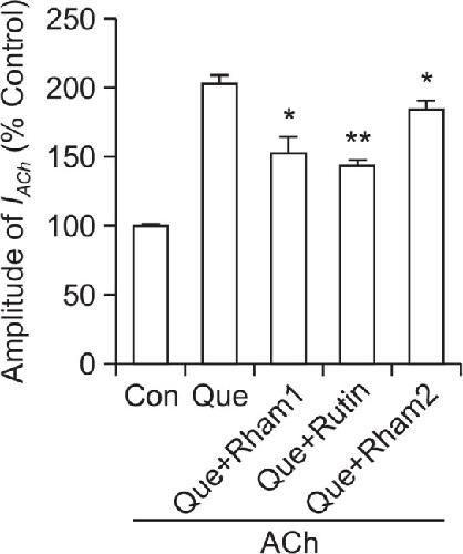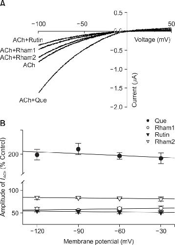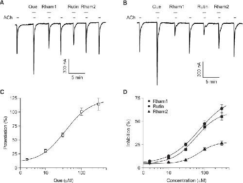 Differential Effects of Quercetin and Quercetin Glycosides on Human α7 Nicotinic Acetylcholine Receptor-Mediated Ion Currents. , Lee BH, Choi SH, Kim HJ , Jung SW, Hwang SH, Pyo MK, Rhim H, Kim HC , Kim HK , Lee SM, Nah SY., Biomol Ther (Seoul). July 1, 2016; 24 (4): 410-7.
