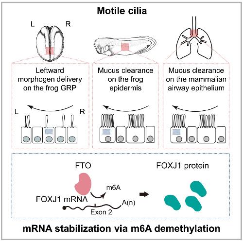 RNA demethylation by FTO stabilizes the FOXJ1 mRNA for proper motile ciliogenesis. , Kim H , Lee YS , Kim SM, Jang S, Choi H, Lee JW , Kim TD, Kim VN., Dev Cell. April 19, 2021; 56 (8): 1118-1130.e6.