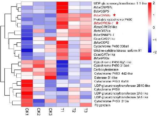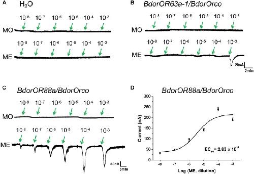 BdorOR88a Modulates the Responsiveness to Methyl Eugenol in Mature Males of Bactrocera dorsalis (Hendel). , Liu H , Chen ZS, Zhang DJ, Lu YY., Front Physiol. January 1, 2018; 9 987.